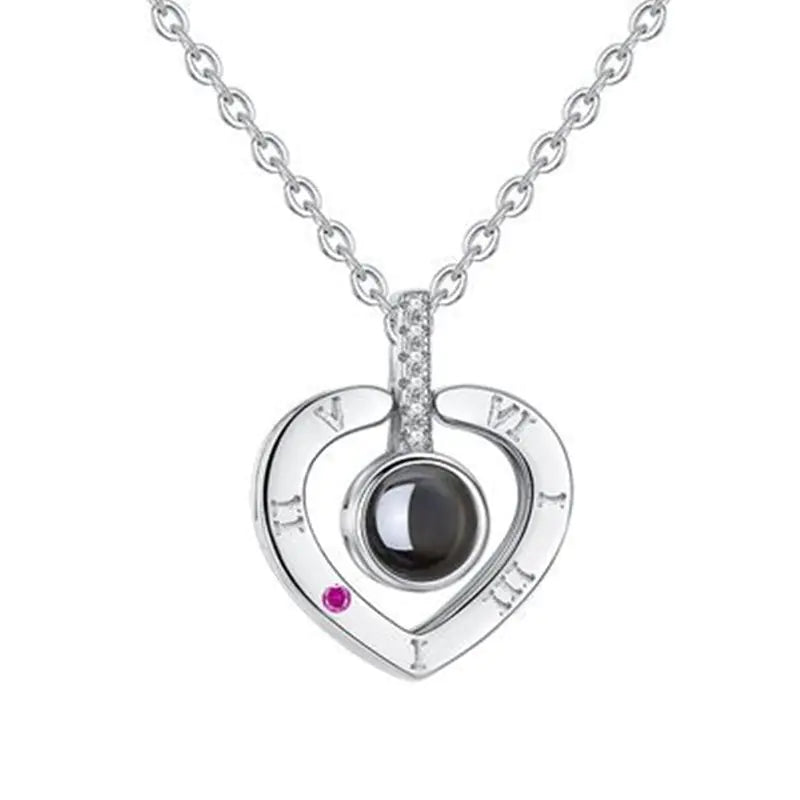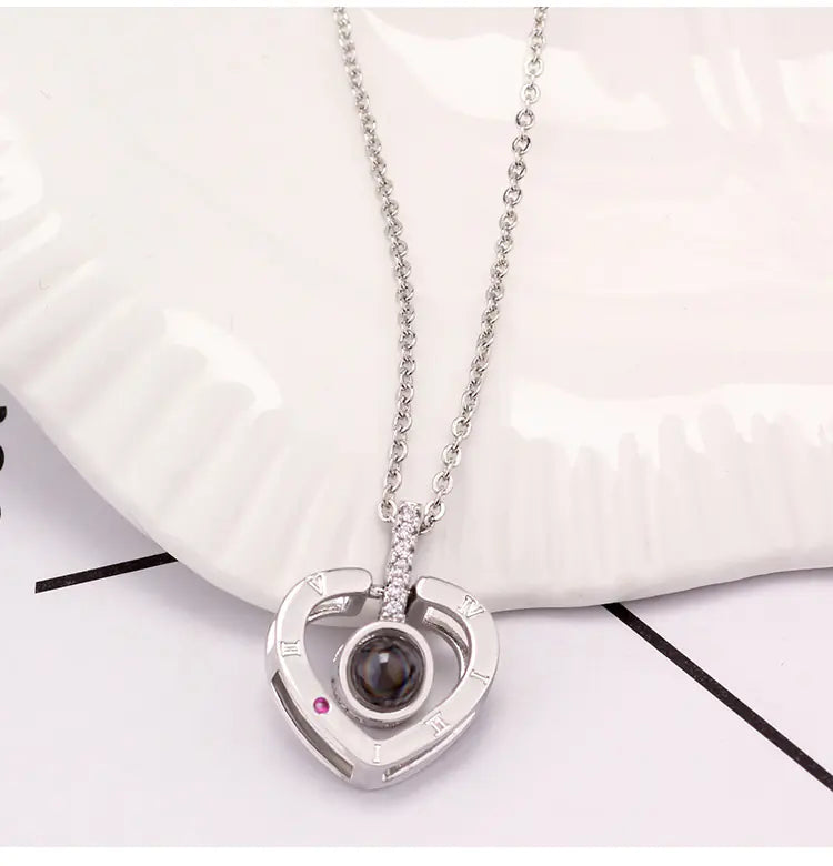 Collier pendentif mémoire en forme de cœur en 100 langues