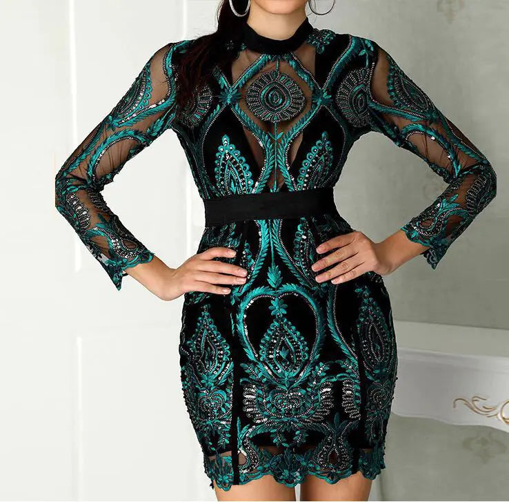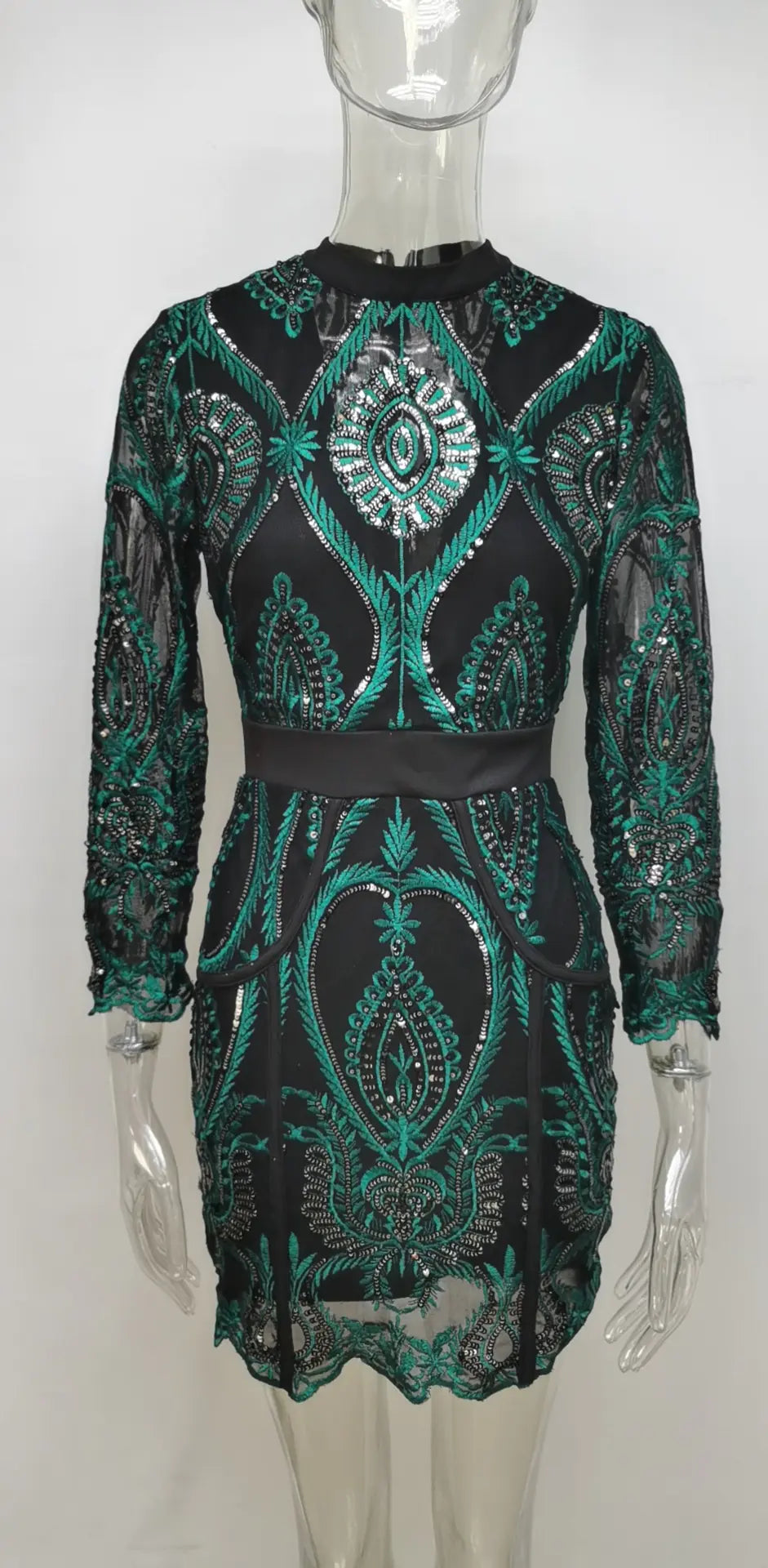2020 New Fashion Sequined Long Sleeve Bodycon Dress