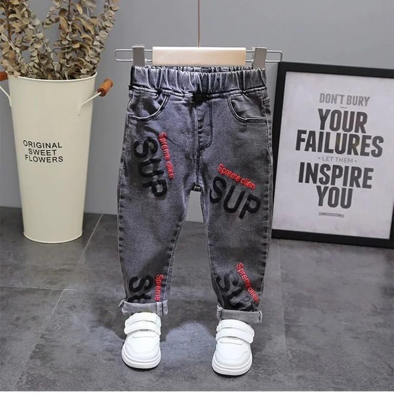 Discover the perfect blend of comfort and style with our versatile children's trousers, designed specifically for active toddlers and young boys. These trendy jeans feature a stretchy fabric that allows for easy movement, making them ideal for playtime, outings, and everything in between.