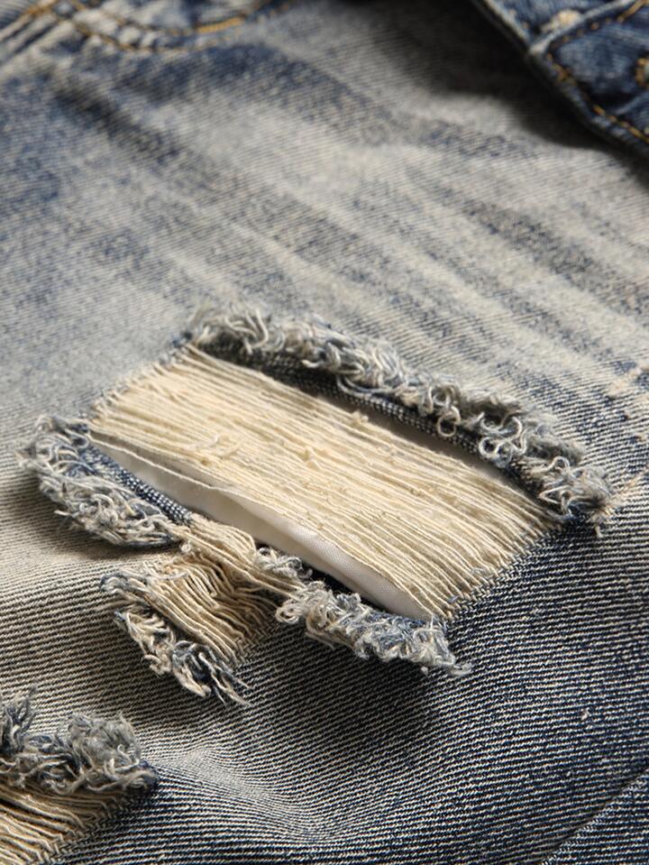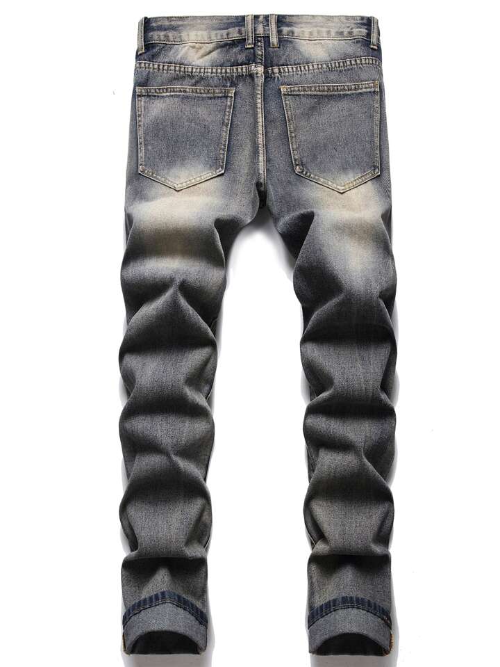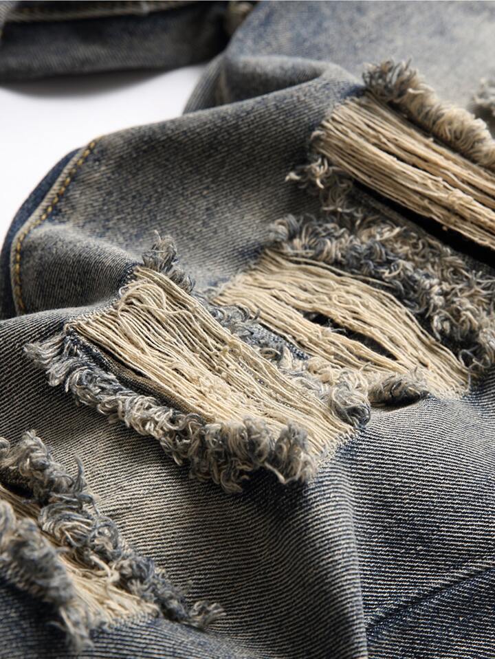 Embroidered Ripped Men's Nostalgic Jeans Pants