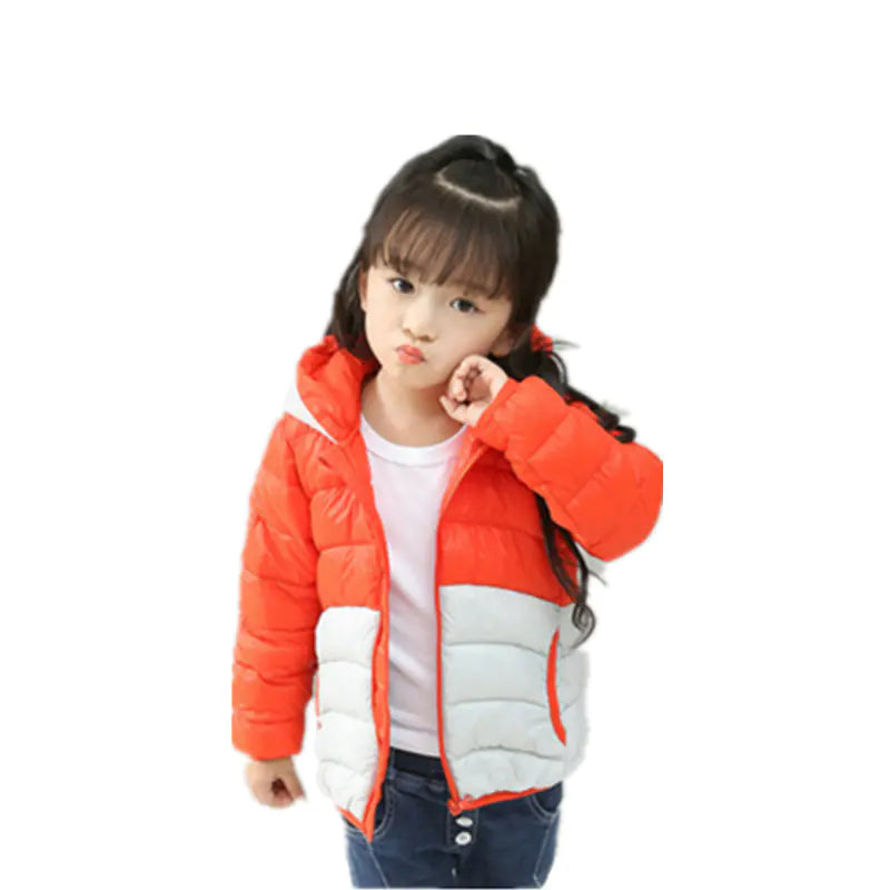 Our down jacket features a chic design in multiple vibrant colors including Black, Orange, Blue, Red, and Rose Red. Each color is sure to stand out while keeping your child cozy and protected from the cold.